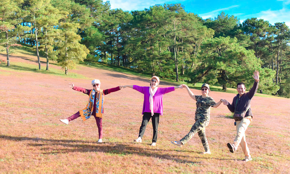 Khách check in đồi cỏ hồng Đà Lạt cuối năm 2024. Ảnh: Văn Phú